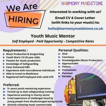 HARMONIX MENTOR – JOB SPEC (2025) Job Role: Youth Music Mentor Project: Harmonix Job Description:…